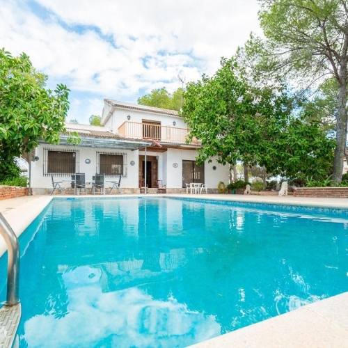 Outside, too, this villa is fully equipped to enjoy the Mediterranean climate. The beautiful garden features a cozy chill-out zone and a private swimming pool with a Jacuzzi , where you can relax in complete privacy. Additionally, an extra covered area has been created that can serve perfectly as a guest house, hobby room, or extra lounge spot . Furthermore, there is a practical storage room behind the kitchen, ideal for extra storage.