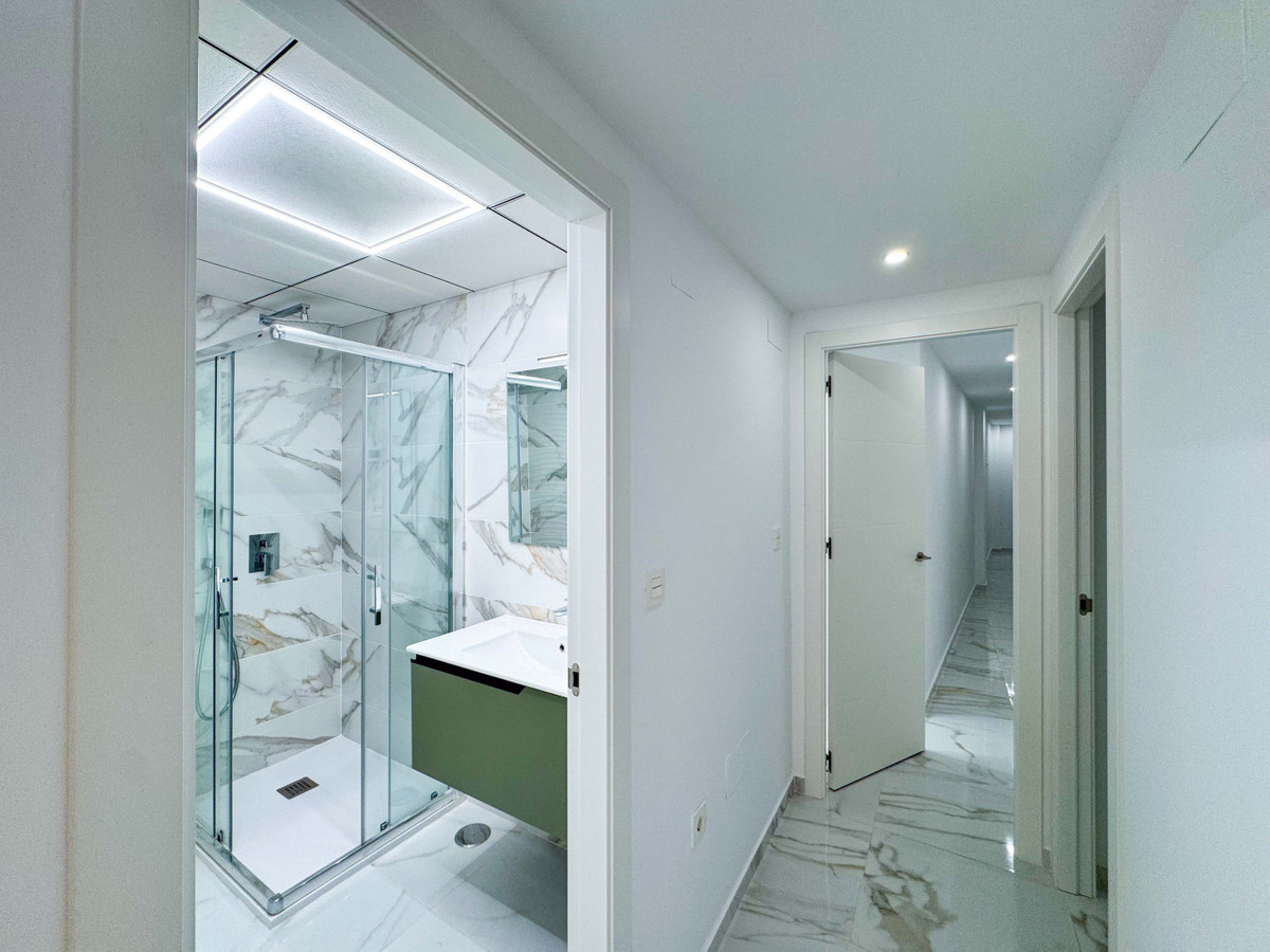 New 2-bedroom apartment located in the heart of Torrevieja featuring a private patio and communal solarium. Built just one year ago, this modern apartment is fully equipped with centralized air conditioning and underfloor heating in the bathrooms. Being on the first floor offers the advantage of a patio connecting the two bedrooms, enhancing natural light, ventilation, and storage possibilities. The layout includes two bedrooms, one en suite, and a comfortable living room perfect for daily living. The building offers a modern elevator and on the rooftop a solarium with sauna and barbecue area, ideal for social gatherings and relaxation. Nearby amenities include shopping centers, medical facilities, schools, parks, and supermarkets, which enhance convenience and lifestyle. This apartment is perfect for personal use or as an investment with excellent holiday rental potential. Request a virtual tour or floor plan and arrange a visit today.