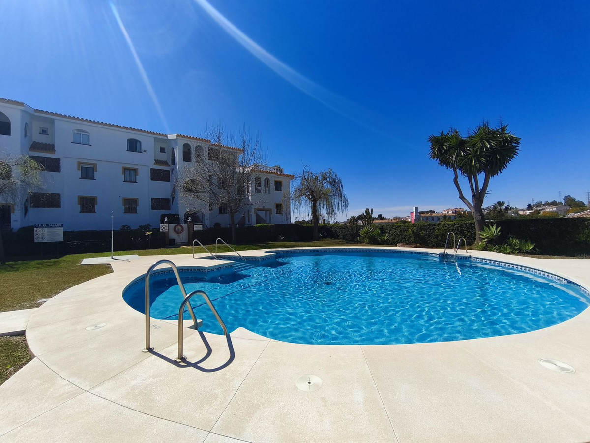 With Tourist Licence issued by the Junta de Andalucia: This is a lovely 2 bedroom 1 bathroom apartment within a small gated complex of apartments with community gardens and a swimming pool, ideally situated just 450 metres from all the amenities and sandy beaches of Riviera del Sol, Mijas Costa. R11 Sports Club is just across the road with cafeteria, padel, tennis courts and gym. Max Beach restaurant and pool beach club is an easy 5 minutes walk away. This apartment is really about location!