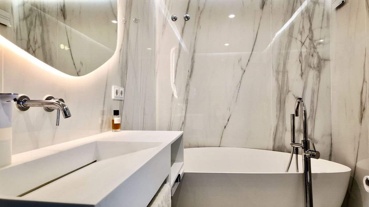 The upper level is the highlight of the property: a spacious rooftop terrace with jacuzzi and a second barbecue area, offering panoramic views of the sea, La Concha and even Gibraltar. A very rare feature at this price point, perfect for both personal use and rental investment.