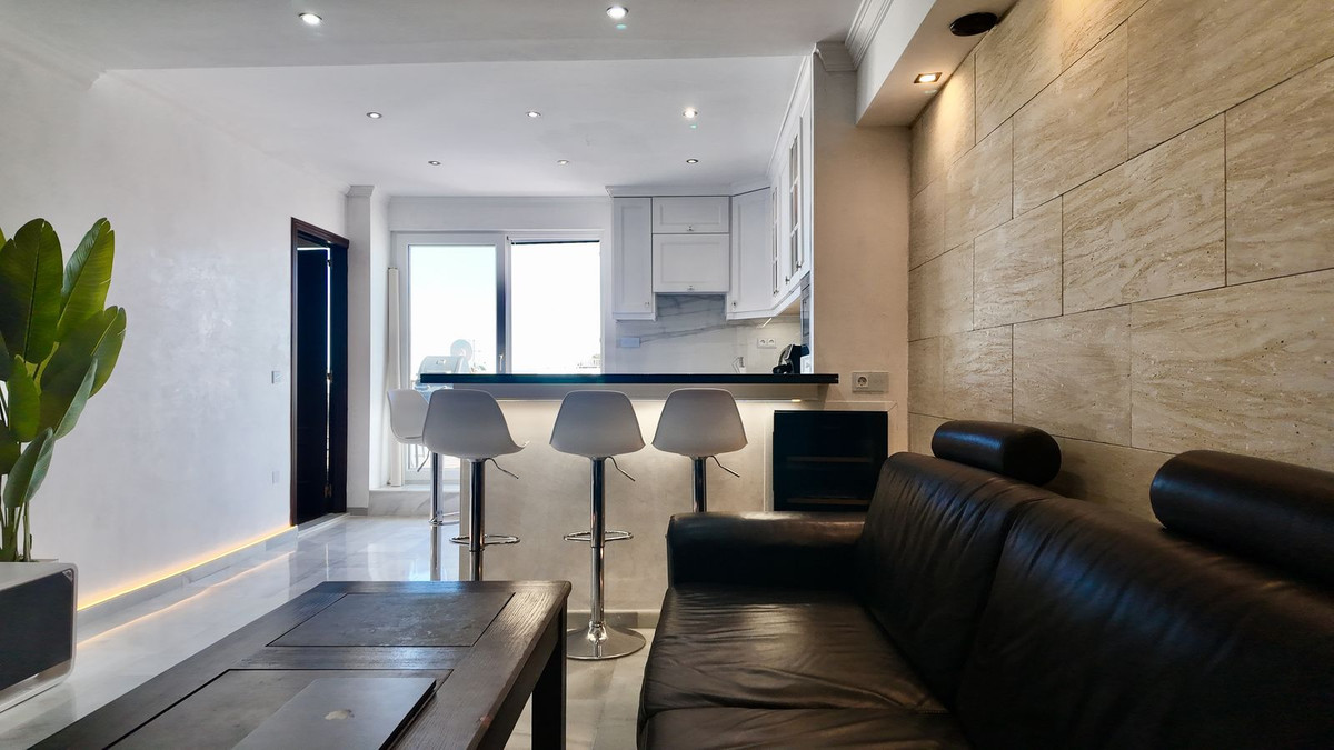 A fully renovated duplex penthouse with panoramic sea views, La Concha and Gibraltar for under €400,000 is a rare opportunity in Marbella.