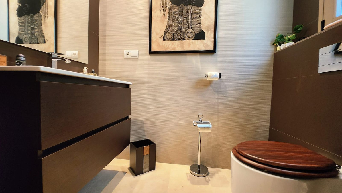 Originally designed as a three-bedroom home, the property has been thoughtfully reconfigured into an elegant residence with two spacious en-suite bedrooms and a guest toilet. The bright, open-plan living and dining area flows seamlessly into a fully fitted contemporary kitchen and a sun-filled terrace.