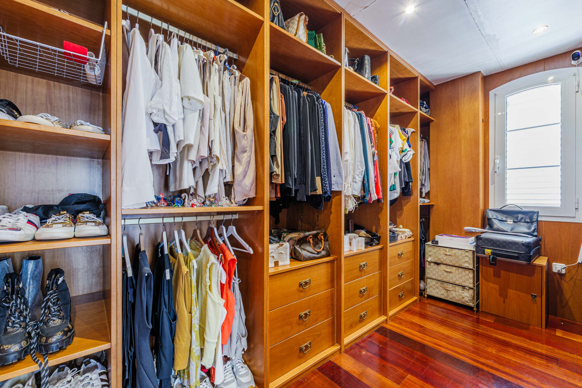 Charming Mediterranean-style villa in Puerto de la Torre, featuring spacious paved outdoor areas, meticulously maintained gardens, and elegant interiors distributed across three levels. The property welcomes you with a classic-style foyer, highlighted by an impressive double staircase made of white marble that opens out in two directions. Wrought iron railings with ornamental details and wooden handrails add a sophisticated, timeless touch. A large octagonal skylight above floods the space with natural light, further enhancing its spaciousness, while a classical sculpture on the central landing reinforces the elegance of the ensemble.
