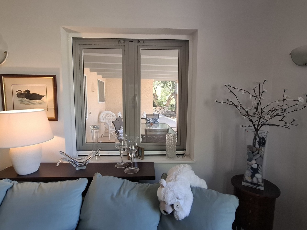 A doorway from this area provides convenient access to the front terrace and swimming pool.