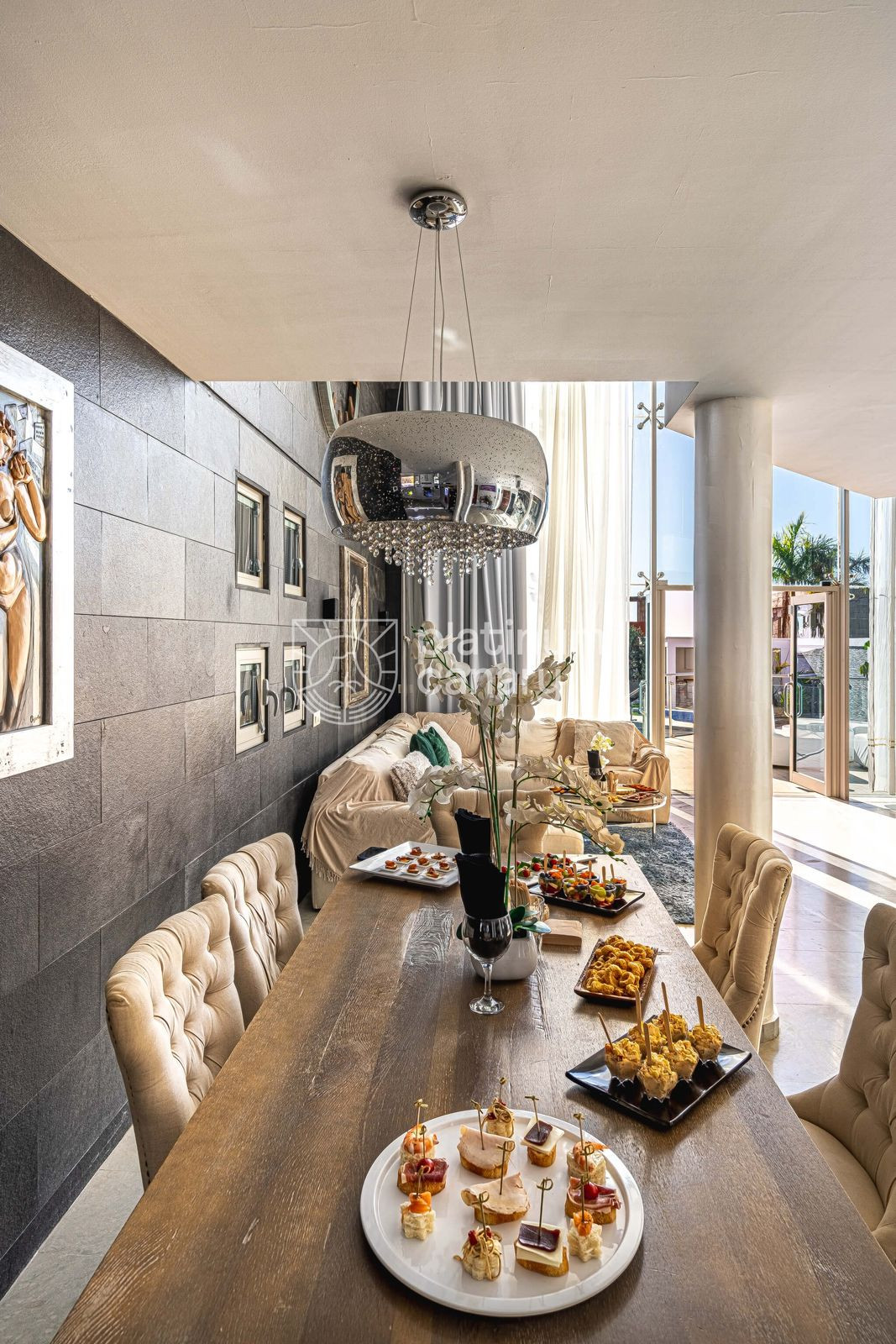 A luxury 5-bedroom villa with ocean views, a private studio, and a gym on the top floor.