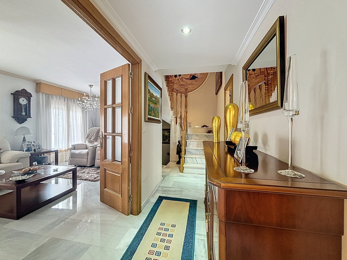 Denne smukke 3-etagers villa i Torre del Mar er præsenteret, ideel for familier, der søger plads, komfort og fremragende beliggenhed. På første sal finder vi en meget lys og hyggelig stue, et toilet og et separat køkken-spisestue, perfekt til at nyde familielivet og afslappede øjeblikke. Anden sal har 3 soveværelser, to af dem med adgang til terrasse, et med eget badeværelse og et andet badeværelse, som giver privatliv og komfort for alle familiemedlemmer. I kælderen er der et rummeligt soveværelse med omklædningsrum, et fuldt badeværelse og en vinkælder. Dette rum er meget alsidigt: det kan bruges som garage til 2 biler eller som et ekstra hjem, afhængigt af behovene. Udenfor har huset en glasterrasse, en privat pool og et udendørs køkken med grill, perfekt til at nyde det gode vejr og udendørs fritid. Huset har også et opbevaringsrum, vaskerum, indbyggede skabe, aircondition og pejs, hvilket fuldender et hjem fyldt med komfort. En unik mulighed på en fremragende beliggenhed i Torre del Mar, klar til at flytte ind og nyde Middelhavet.   Vi er glade for snart at kunne præsentere denne ejendom for dig, enten personligt eller via virtuel fremvisning. Fordi denne verden er unik - ligesom vores Axarquía. I Andalusien. På Costa del Sol. Her, på livets solrige side...