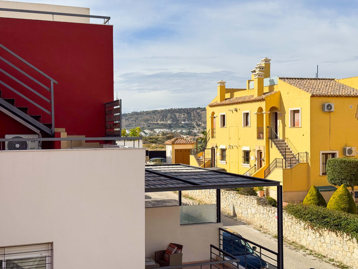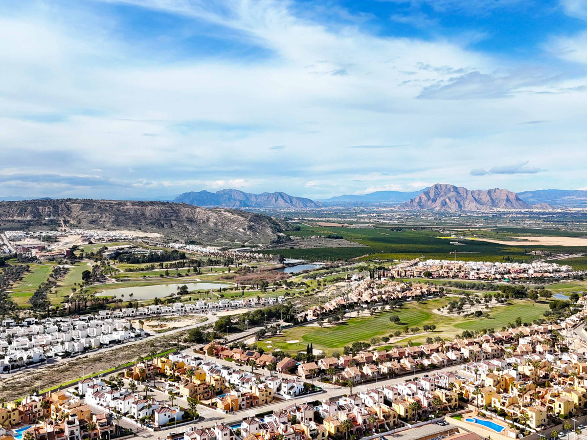 We present this new and unused home, located in one of the most privileged and high-value areas of the Costa Blanca South. The house is just 1 km from the prestigious La Finca golf course, offering an ideal location for golf lovers and tranquility seekers, but with excellent connections, close to the highway and a short drive from beaches, airports, and nearby cities. It is situated only 6 km from the center of Algorfa.The townhouse has 3 bedrooms and 2 bathrooms, a spacious living room and kitchen, designed to enjoy bright and functional spaces. Outside, it features a cozy porch, terraces on the first and second floors, and a solarium, all with views of the spectacular mountain landscape.One of its greatest attractions is the 57 m² basement garage, with endless possibilities: workshop, leisure area, wine cellar, or storage. Additionally, a private pool can be built in the garden, adapting to your lifestyle.The home is located directly behind a shopping center with restaurants, combining convenience and access to services with the tranquility of the residential area. The location is unbeatable: only 15 minutes from the beaches of Guardamar del Segura, 35 minutes from Alicante airport, and close to urban centers such as Almoradí, Benijófar, Ciudad Quesada, Torrevieja, and Orihuela Costa, where you will find large shopping centers and services.This is a unique opportunity to acquire a modern home in an exclusive and perfectly connected area, a perfect option for golf lovers.Do not hesitate to contact us for a visit!