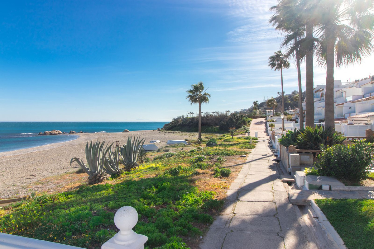 Oplev dette indbydende rækkehus beliggende på en førsteklasses strandpromenade i La Duquesa-området, hvor du kan nyde Middelhavet kun få skridt fra din dør.
