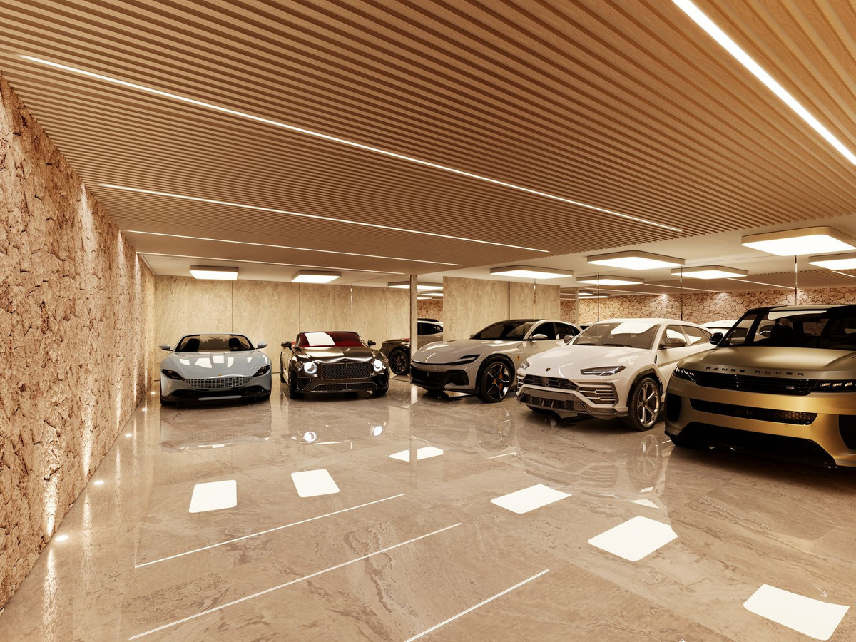 Spacious garage with capacity for up to 5 cars, designed for convenient and secure access.