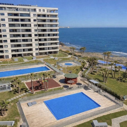 Always dreamed of a First Line Luxury Corner Penthouse located on a coveted luxury resort "Posidonia" in Punta Prima, Orihuela-Costa.This is your chance to become the proud owner of this gem in this beautiful Resort with more facilities than a hotel and of course this property is also ideal for rental, so you can make a nice return. Not to be forgotten, you can come yourself and use your humble abode whenever you want.This stunning property is fully equipped with all kinds of extras. This gem consists of 3 bedrooms and 2 bathrooms, one of which is en-suite. Naturally, all the spaces including the huge terrace that is accessible from nearly every room of the property here bring spectacular panoramic sea views and are located just 50 meters from Rocio del Mar beach.When entering the property, it is not only the spacious living space or the open modern kitchen that attracts your attention, but of course the large sliding windows where you are overwhelmed by the beautiful panoramic view over the sea where you can enjoy a beautiful spacious terrace with sun, sea and tranquility. You can also enjoy the yachts, sailing boats and the Jetsky's that keep sailing past from the ports of the city of Torrevieja, a few km from the resort, and you can also see the beautiful city of Torrevieja from your terrace.The spacious master bedroom has a beautiful sea views with direct access to the spacious terrace, if this is not a dream to wake up every morning and be the first to see the sun shining from the sea. The en-suite bathroom has all the necessary luxury, a large walk-in shower with underfloor heating.The guest bedrooms also has the perfect size to fit a double bed and of course it comes included with large fitted wardrobes. The family bathroom consists of a large walk-in shower, toilet and sink and underfloor heating is also provided here.Resort:The state-of-the-art common area at this beautiful Resort includes:Three swimming pools (one heated for year-round use), loungers, children's play area, children's pool.Contact us for a (video) viewing.