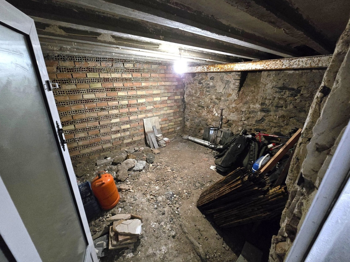 A staircase leads down to the basement level, where you’ll find an additional room ready for renovation, a bathroom, and a charming terrace filled with potted plants—an ideal spot to relax and enjoy panoramic views.