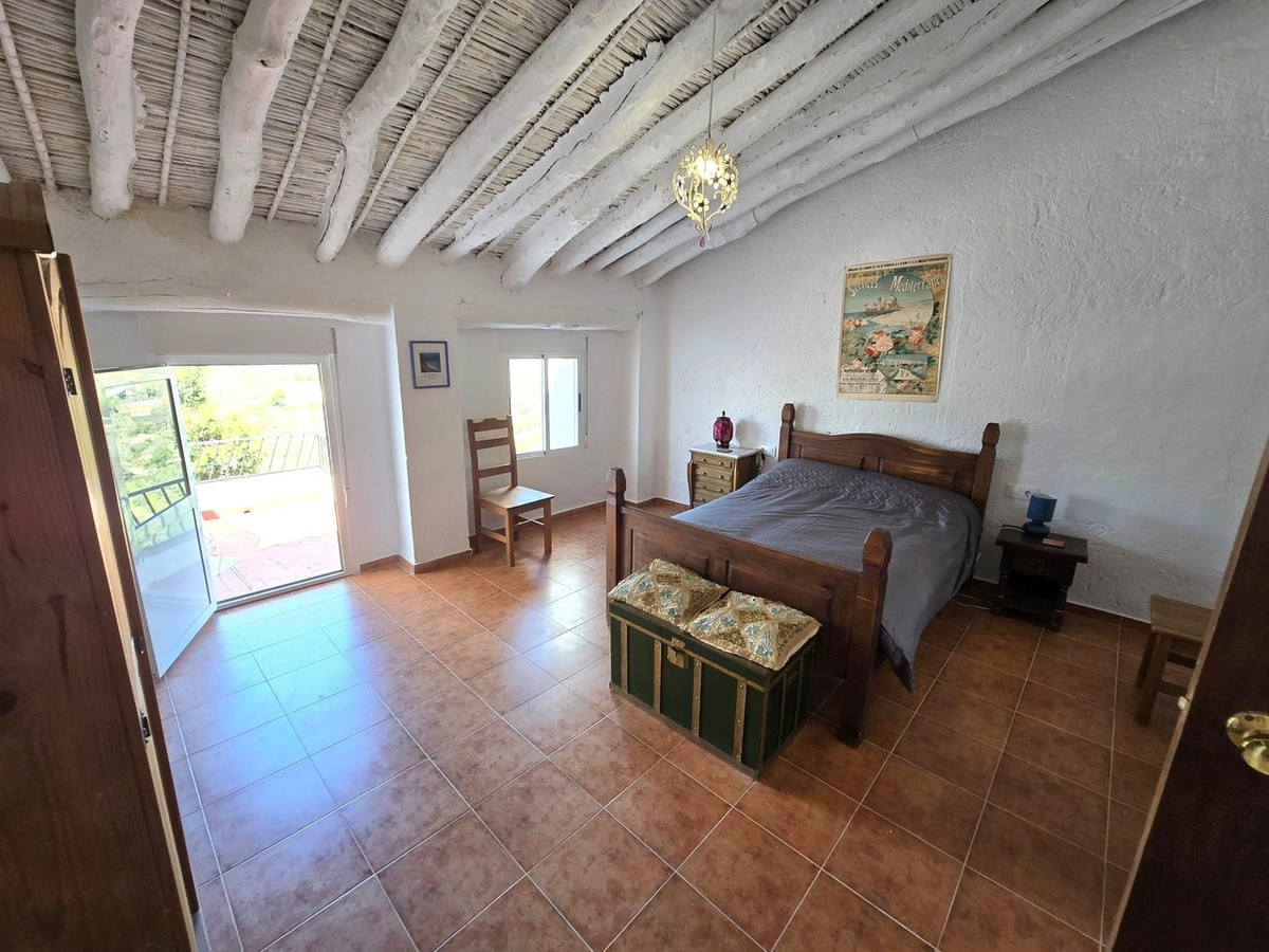 Upstairs on the first floor, there are two guest bedrooms, both with balconies, and a spacious master bedroom with access to a private terrace overlooking Serón. Throughout the home, original wooden beams add warmth and character.