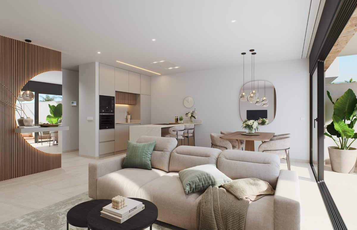 Beliggende i San Pedro del Pinatar, et autentisk kystparadis, tilbyder det den unikke oplevelse at bo mellem to have. Ejendommen har tre rummelige soveværelser, tre badeværelser, privat swimmingpool, solarium og anlagt have – designet til maksimal komfort, privatliv og ro.