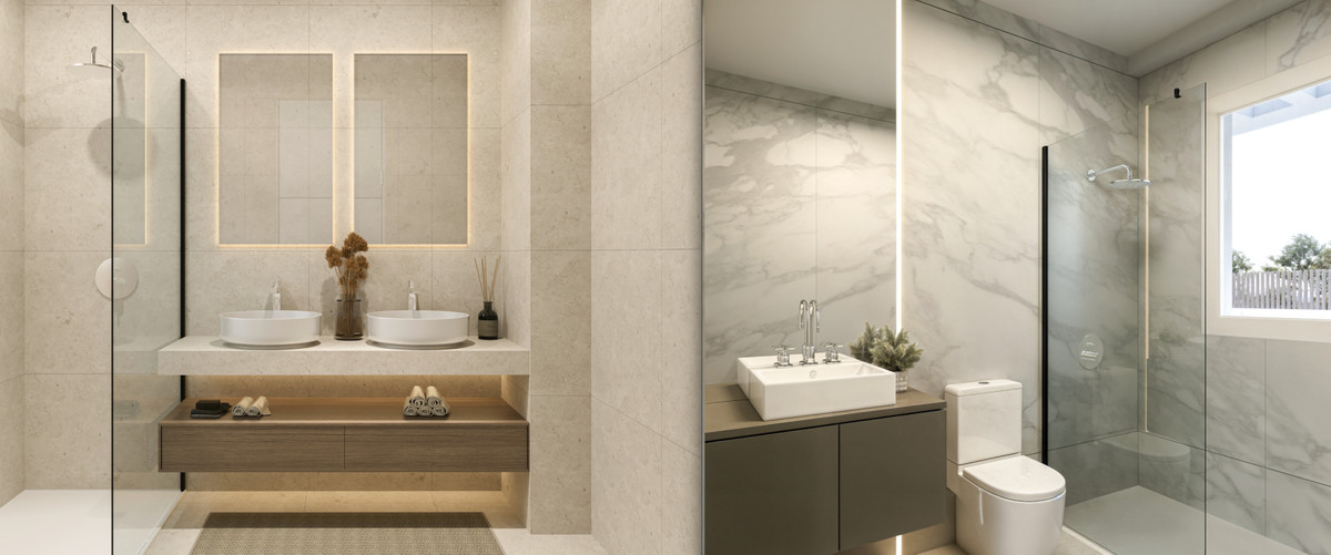 Villaerne leveres nøglefærdige, med fuldt færdige badeværelser og køkken, inklusive apparater og indbyggede skabe.