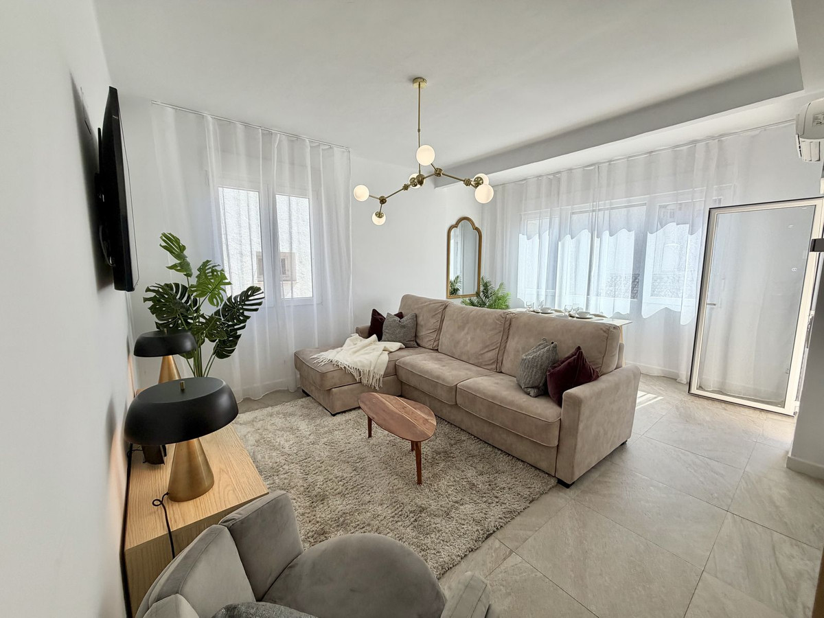 Start your day on the sunny balcony or enjoy the views from the communal rooftop terrace. You'll be living right in the heart of Fuengirola, with the vibrant city life just around the corner. The open-plan living room and kitchen create a bright, social, and inviting space. Perfect for both relaxing and entertaining.