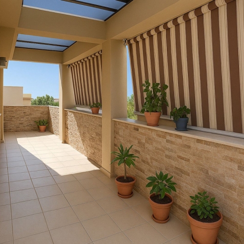 Travertine marble floors, adjustable electric shutters, and the duplex layout—with the possibility of installing a lift—create a perfect balance between elegance and functionality.