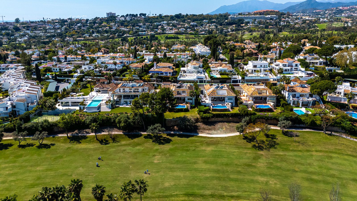 Introducing an exceptional Andalusian villa set in a prime frontline position overlooking Aloha Golf Club, where breathtaking panoramic views extend across the fairways to the iconic La Concha.