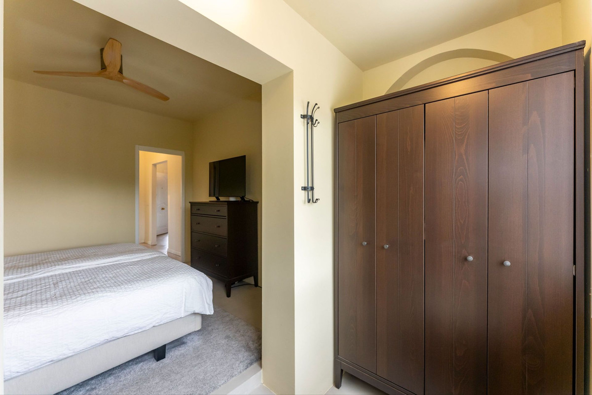 • Direct access to a private covered terrace, slightly elevated and overlooking the courtyard and pool