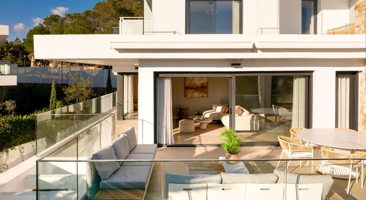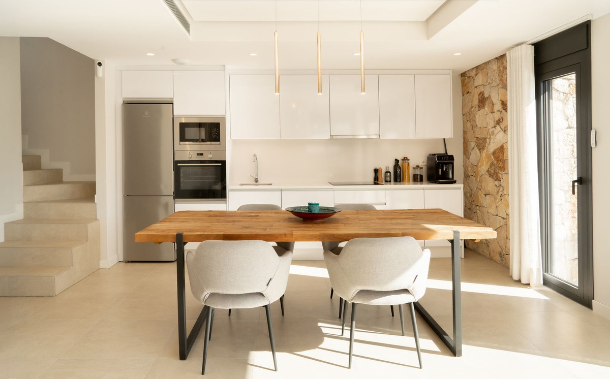 There are three comfortable bedrooms and three bathrooms, which gives a lot of flexibility whether you're using it as a main residence or a second home. Upstairs, the private solarium really completes the property. It's a space where you can fully enjoy the climate here, whether that's relaxing during the day or having dinner in the evening with complete privacy.