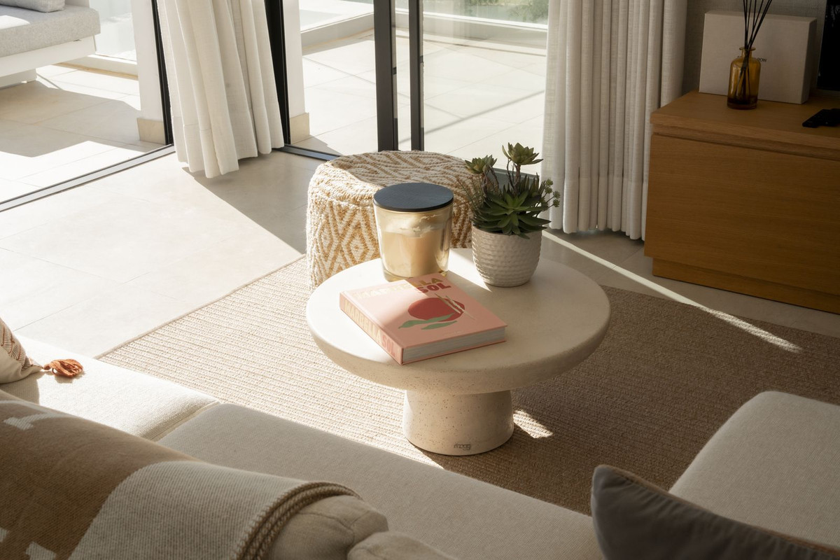 The apartment is distributed over two levels and immediately feels bright and open. The main living area flows naturally into a spacious terrace through large sliding doors, which makes the entire space feel bigger and more connected to the outdoors. It's the kind of layout that works just as well for everyday living as it does for hosting.