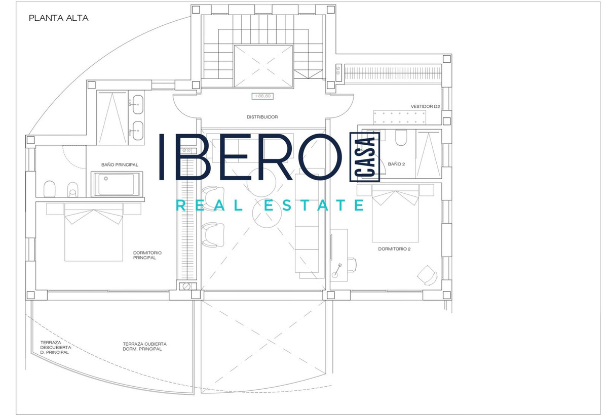 – Double-height living room (6 meters) with abundant natural light and sea views.