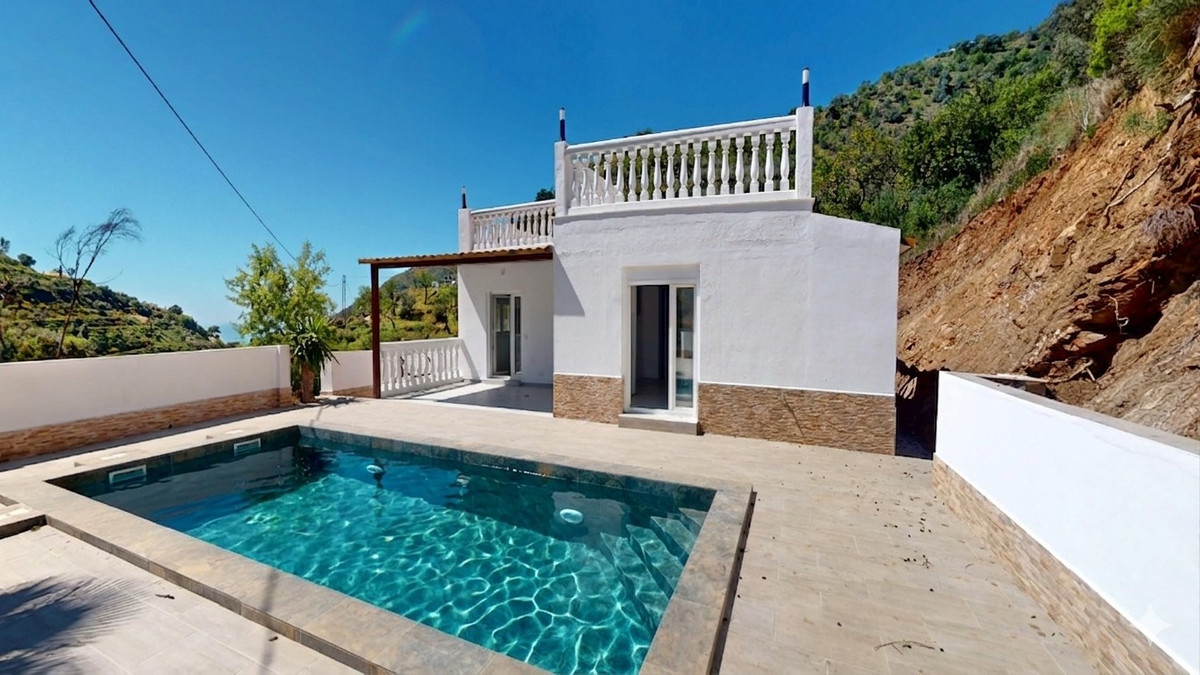 Smuk villa til salg i Arenas, nyligt renoveret, ideel for dem, der søger komfort, ro og spektakulære udsigter. Hovedhuset har en rummelig og lys stue-spisestue ved siden af et fuldt udstyret amerikansk køkken af generøse dimensioner, hvilket skaber et moderne og funktionelt rum. Den har 3 soveværelser, hvoraf det ene har eget badeværelse, samt et andet badeværelse, der giver komfort til hele familien. Udenfor tilbyder ejendommen en stor terrasse med en overdækket del, perfekt til at nyde året rundt. Derudover har den en privat pool og udendørs bruser, ideelt til at få mest muligt ud af det gode vejr. Villaen har også et solarium, hvorfra man kan nyde smukke udsigter over bjergene og havet, hvilket gør det til et perfekt sted at slappe af. Et hus klar til at flytte ind i, med masser af charme og beliggende i et privilegeret miljø. Vi er glade for snart at kunne præsentere denne ejendom for dig, enten personligt eller via virtuel fremvisning. Fordi denne verden er unik - ligesom vores Axarquía. I Andalusien. På Costa del Sol. Her, på livets solrige side...