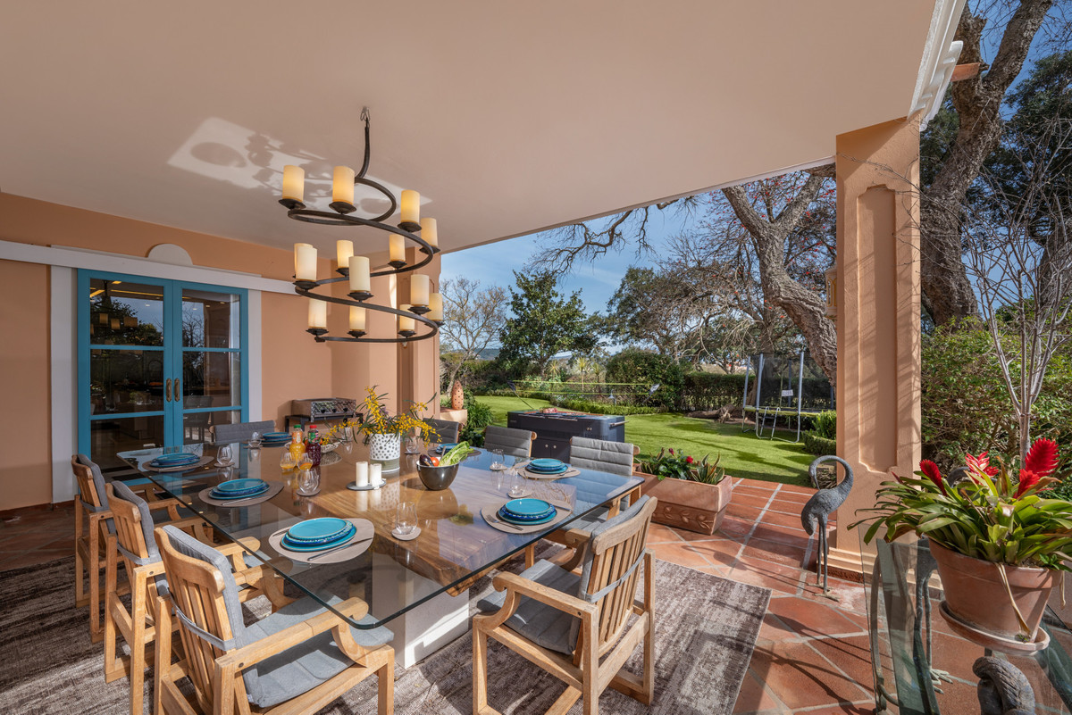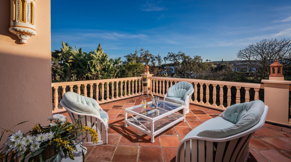 On the upper floor, a welcoming gallery with a sitting area and office space, also with a fireplace, opens onto a large terrace from which magnificent views of the golf course and the sea can be enjoyed. This level also features three guest suites, all with access to private terraces, designed to ensure maximum comfort and privacy.