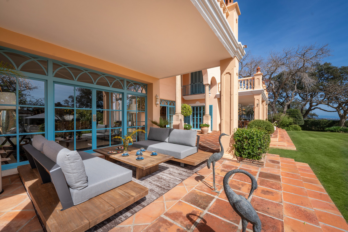 The property sits on a 4,578 m² plot, in an exceptional position between two fairways of the prestigious San Roque Club Old Course. From various points throughout the house, the views extend across the golf course, the sea, the clubhouse, and the Sierra Bermeja mountains, creating a setting of remarkable beauty and tranquillity.