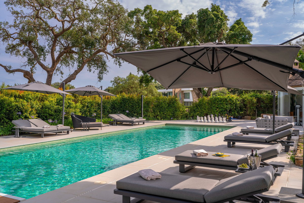 Outside, the mature and meticulously maintained gardens frame the house beautifully and enhance its stately character. The pool area, with a heated swimming pool and a pool house with gym, creates an ideal setting for relaxation, wellbeing, and outdoor living.