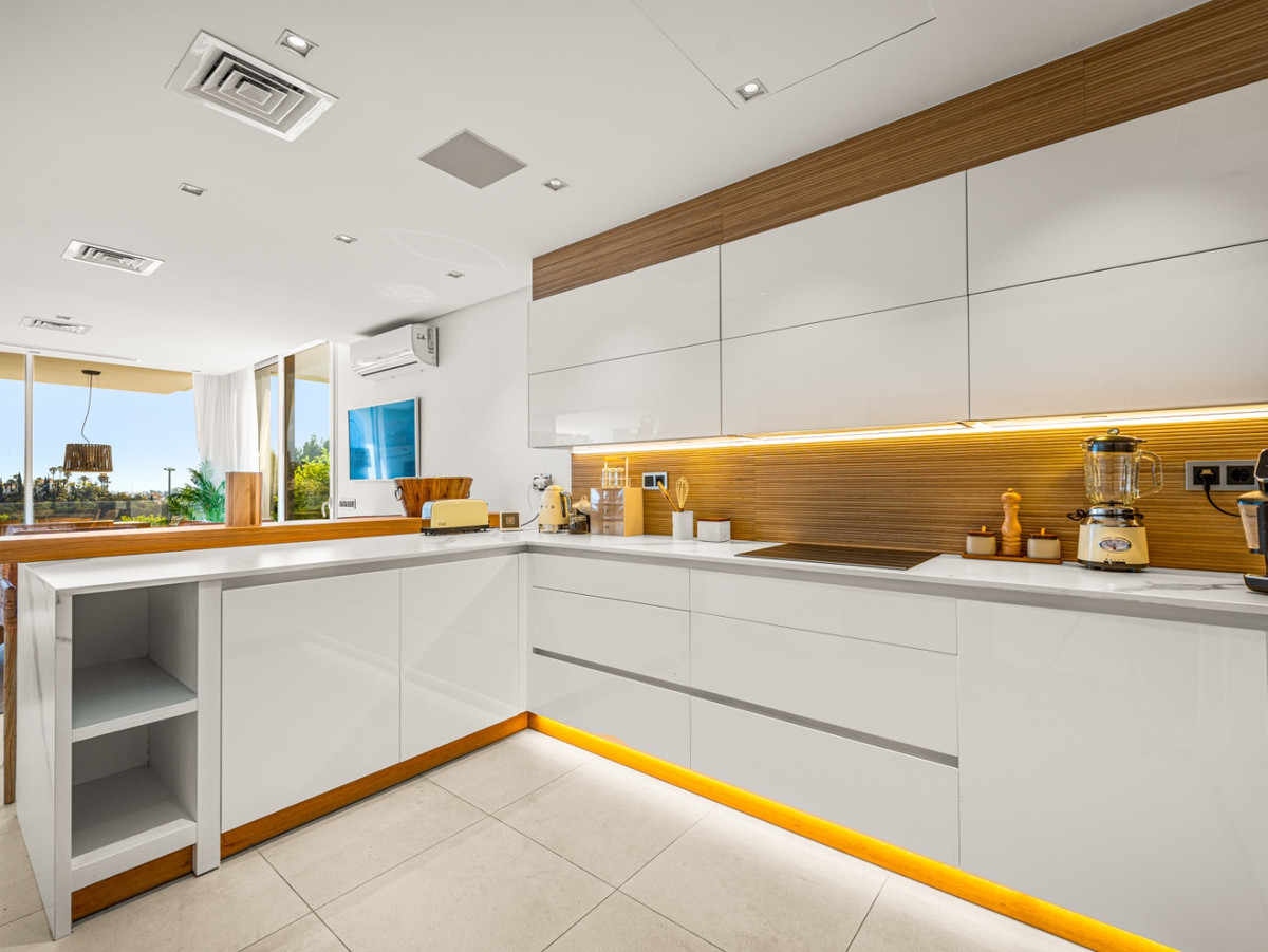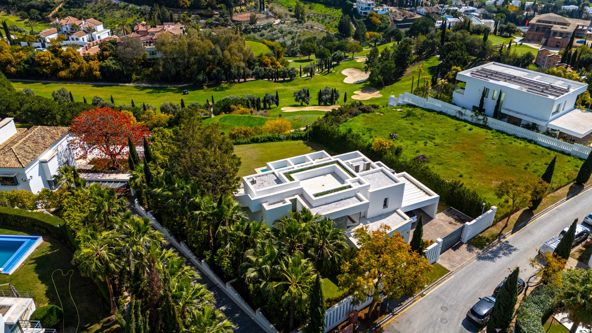 The villa also includes a private cinema, Technogym fitness space and a billiards room for entertainment. A SONOS sound system runs throughout the home and a garage with space for two cars adds convenience. This fully furnished villa is a rare opportunity to own a luxury home in Los Flamingos close to golf, beaches and top restaurants.