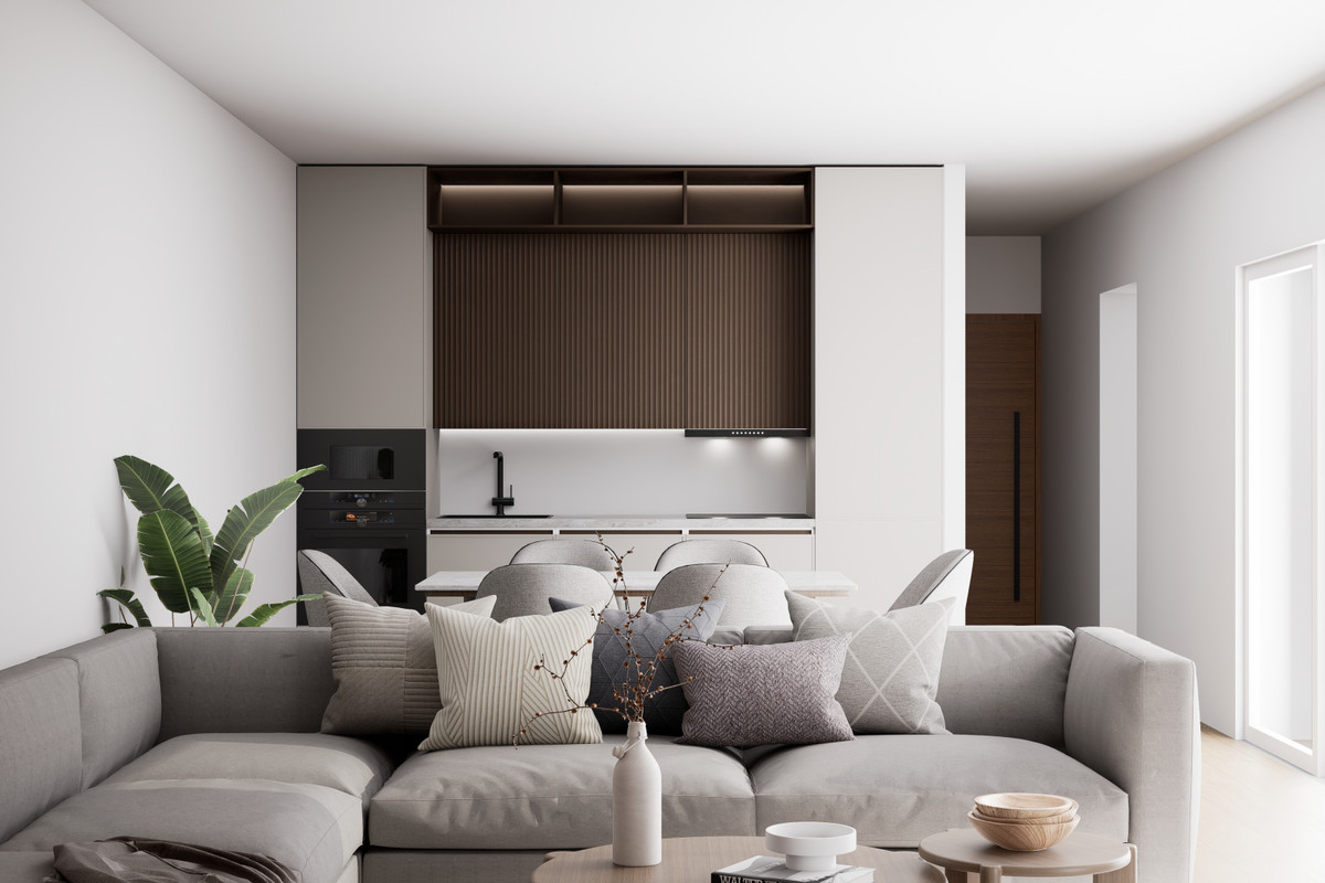Indvendigt er villaen fuldt udstyret med et moderne køkken af høj kvalitet og stilfuldt færdiggjorte badeværelser, hvilket giver en moderne følelse i alle opholdsrum.