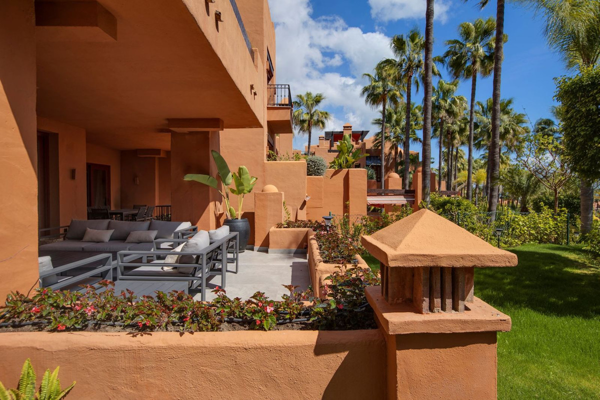 A ground floor residence in one of the most exclusive gated communities in the Puerto Banús area, with round-the-clock security, lush tropical gardens and a pool worthy of a five-star resort.