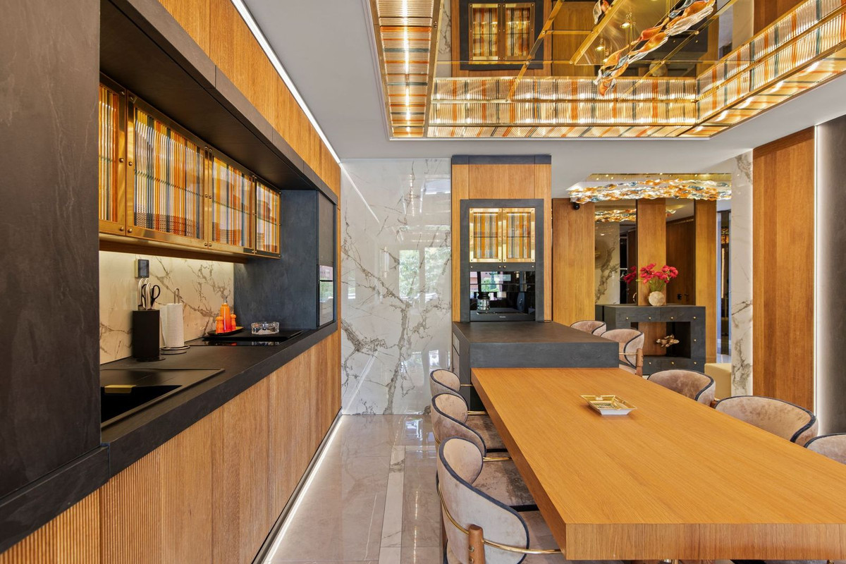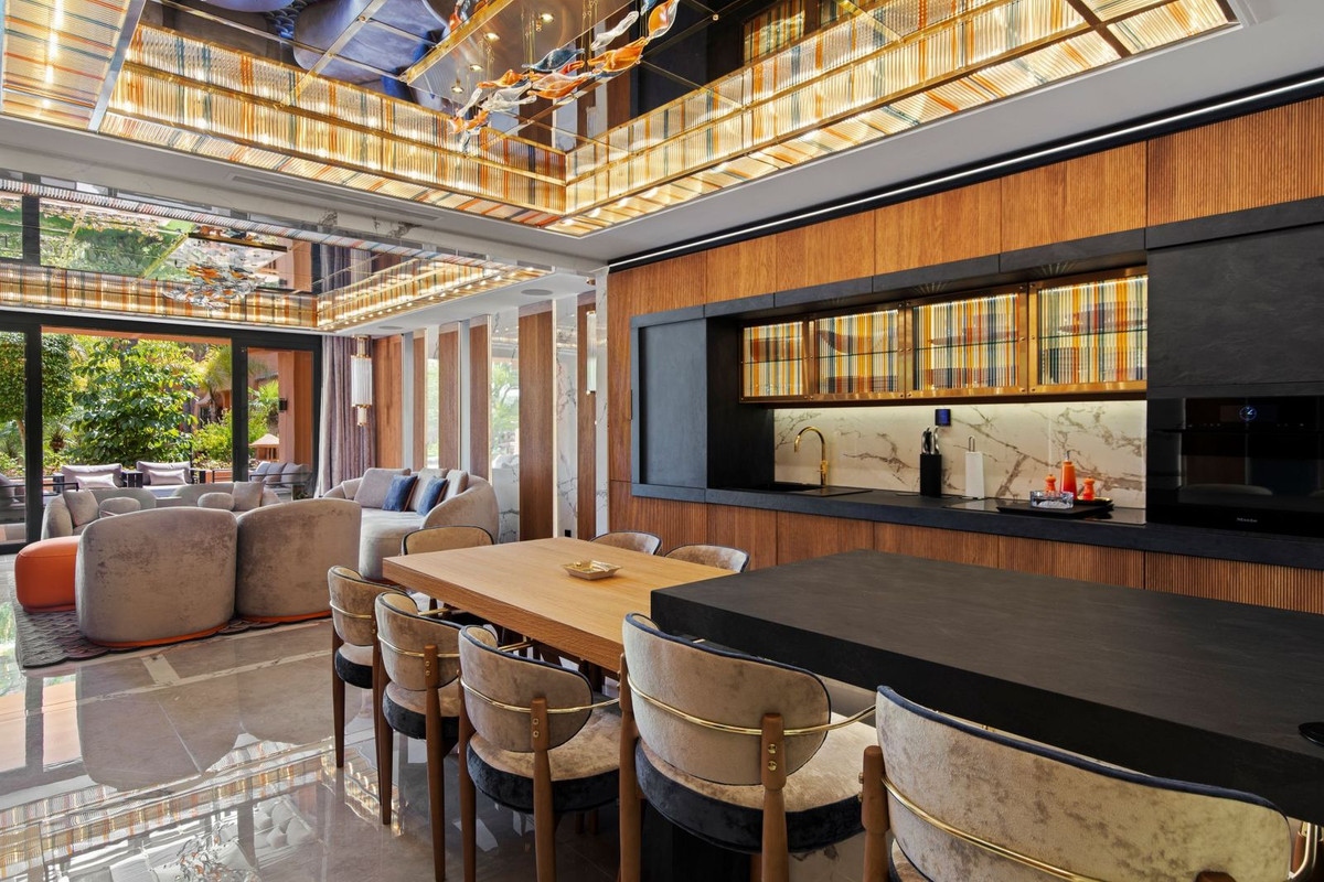 The property has undergone a full renovation of the highest standard, with a bespoke interior design project where every element has been crafted to order. Natural leathers, silks and fine woods come together alongside the work of specialist artisans, with hand-blown glass decorations and one-of-a-kind pieces throughout. The result is a singular residence with no real equivalent on the market today.