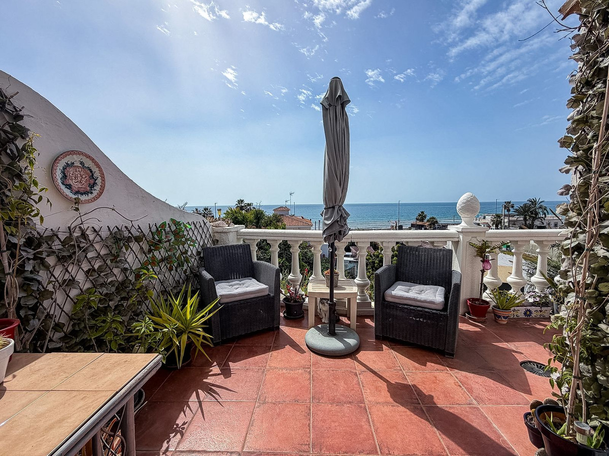 Beliggende i et lille og velholdt boligområde med kun 20 ejendomme i det eftertragtede Peñoncillo-område i Torrox Costa, tilbyder denne lyse sydvendte duplex en fantastisk havudsigt og afslappet kystliv i gåafstand til stranden.
