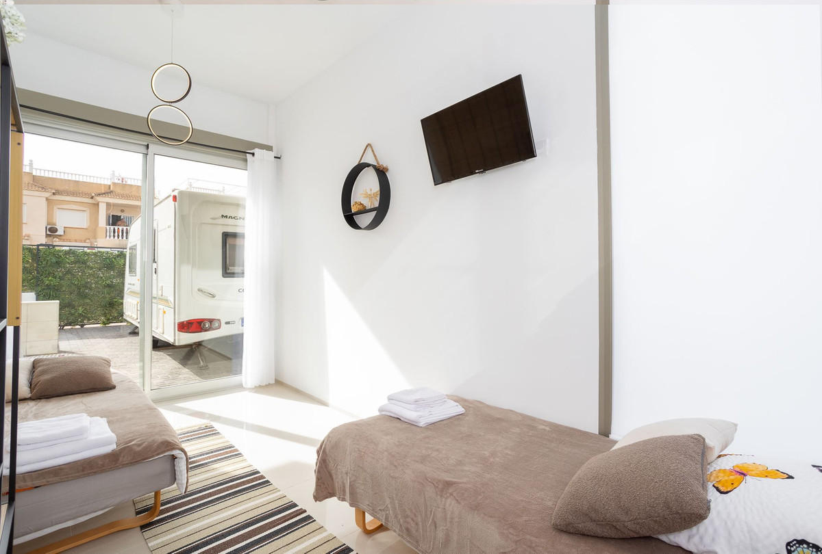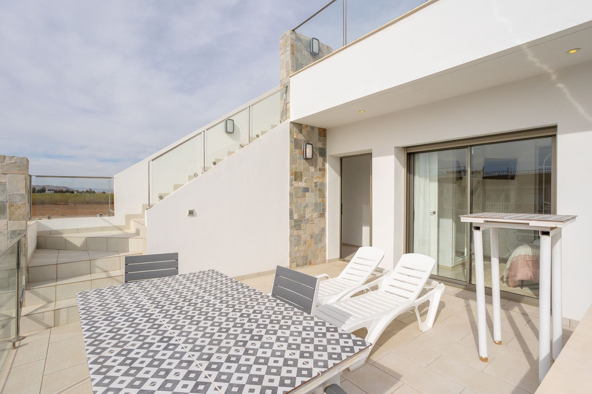 Villa with private pool and roof terrace in popular area A warm welcome to this modern property located in the attractive area of Los Alcázares on the Costa Calida. This villa has four bedrooms, three bathrooms, an open plan living room and kitchen, a terrace and a roof terrace. On the plot there is a private pool in a nice location. This is a stylish property that you will be happy to call your home in Spain!