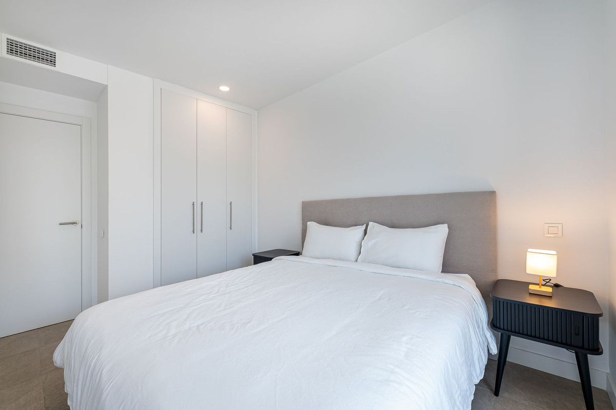 Inside, the apartment features a fully fitted modern kitchen, double‑glazed windows, fitted wardrobes, WiFi, electric blinds and efficient air conditioning. The master bedroom includes an en‑suite bathroom, while the additional bedrooms offer flexibility for guests or a home office. Everything feels fresh, contemporary and ready to enjoy.