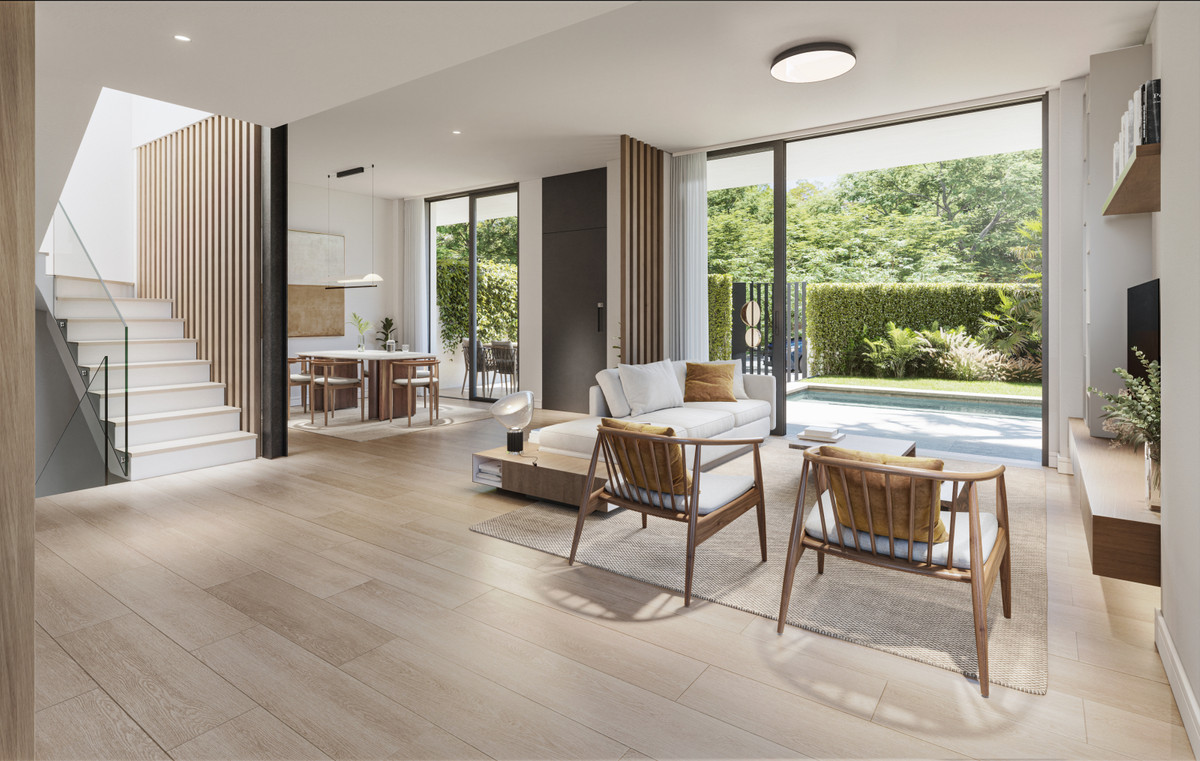 Hver bolig er designet med en intelligent planløsning, der omfatter stueetage, første sal og kælder og tilbyder rummelige områder, der sikrer komfort og funktionalitet. Ejendommen har et generøst udendørsområde og privat parkering samt en charmerende have og privat swimmingpool, ideel til at køle af og slappe af i hjemmets privatliv.