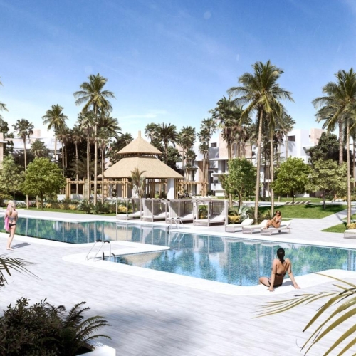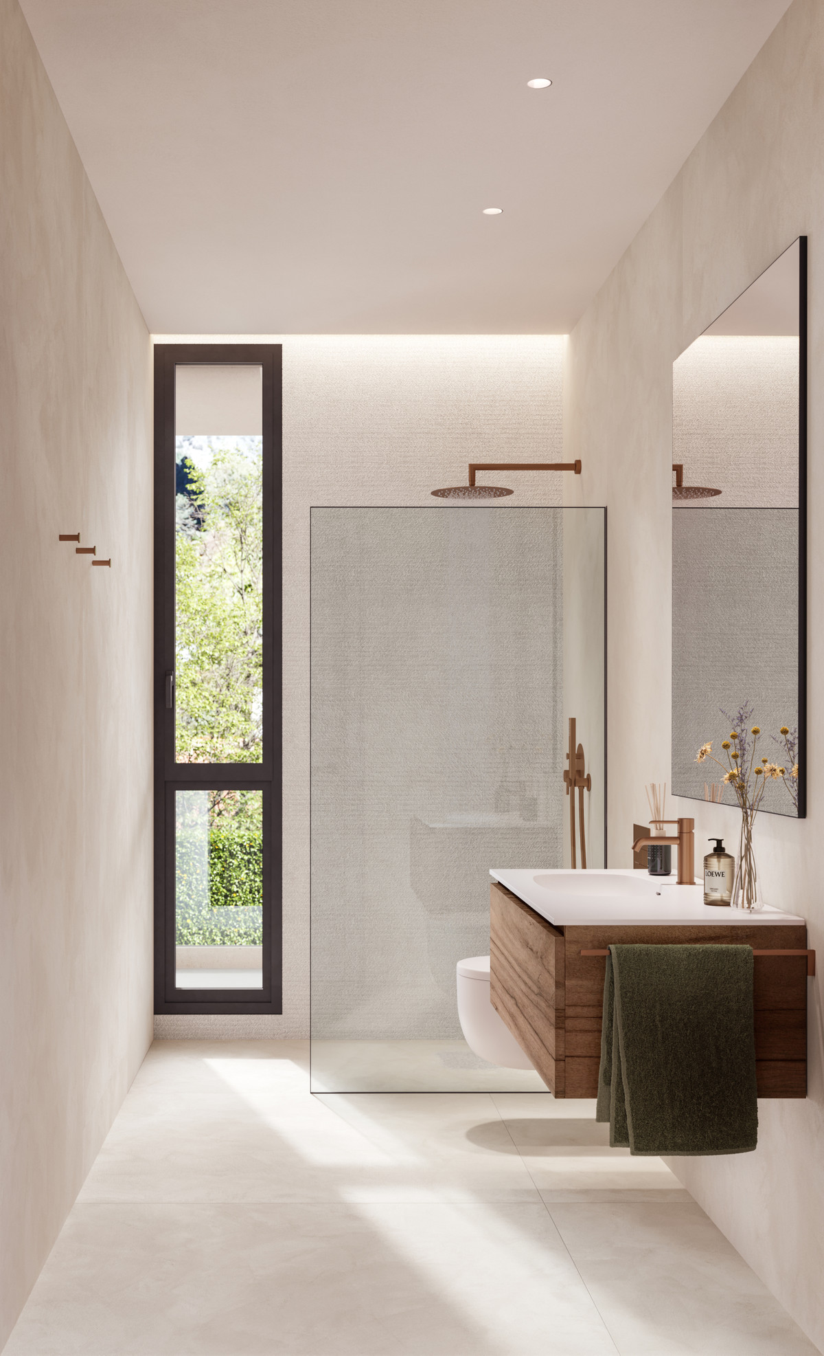 Hver bolig er designet til at tilbyde rummelighed, naturligt lys og en konstant forbindelse til omgivelserne. De indvendige rum flyder elegant sammen, fordelt over flere etager, med store rum og finish i topkvalitet fra anerkendte mærker som Porcelanosa. Fra din private terrasse bliver havet en del af dit daglige landskab og omslutter hvert øjeblik med Middelhavets ro og skønhed.