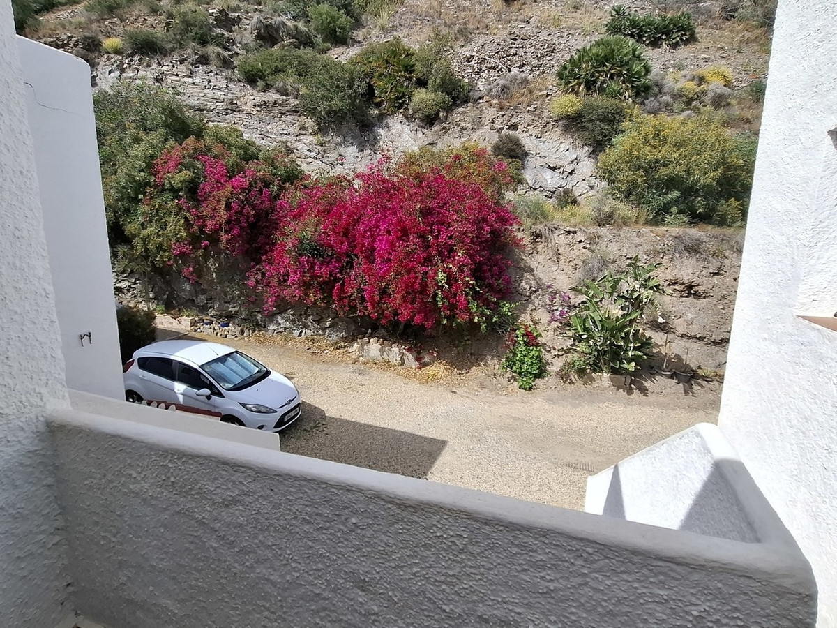 This charming two-bedroom, two-bathroom first-floor apartment is situated in the elevated La Parata area of Mojácar Playa, offering a tranquil setting within a quiet row of properties.