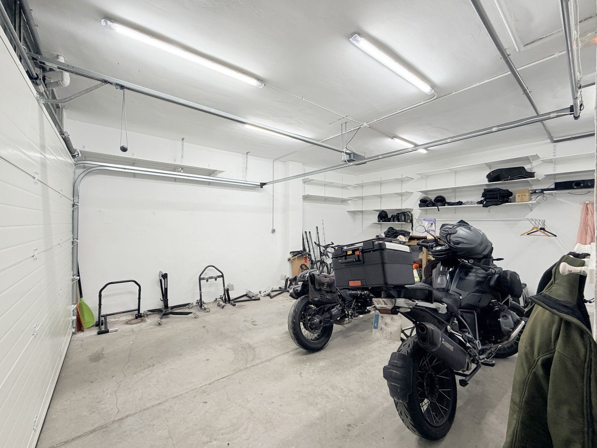 In addition, the property includes a large private garage with space for multiple vehicles, as well as extra storage.