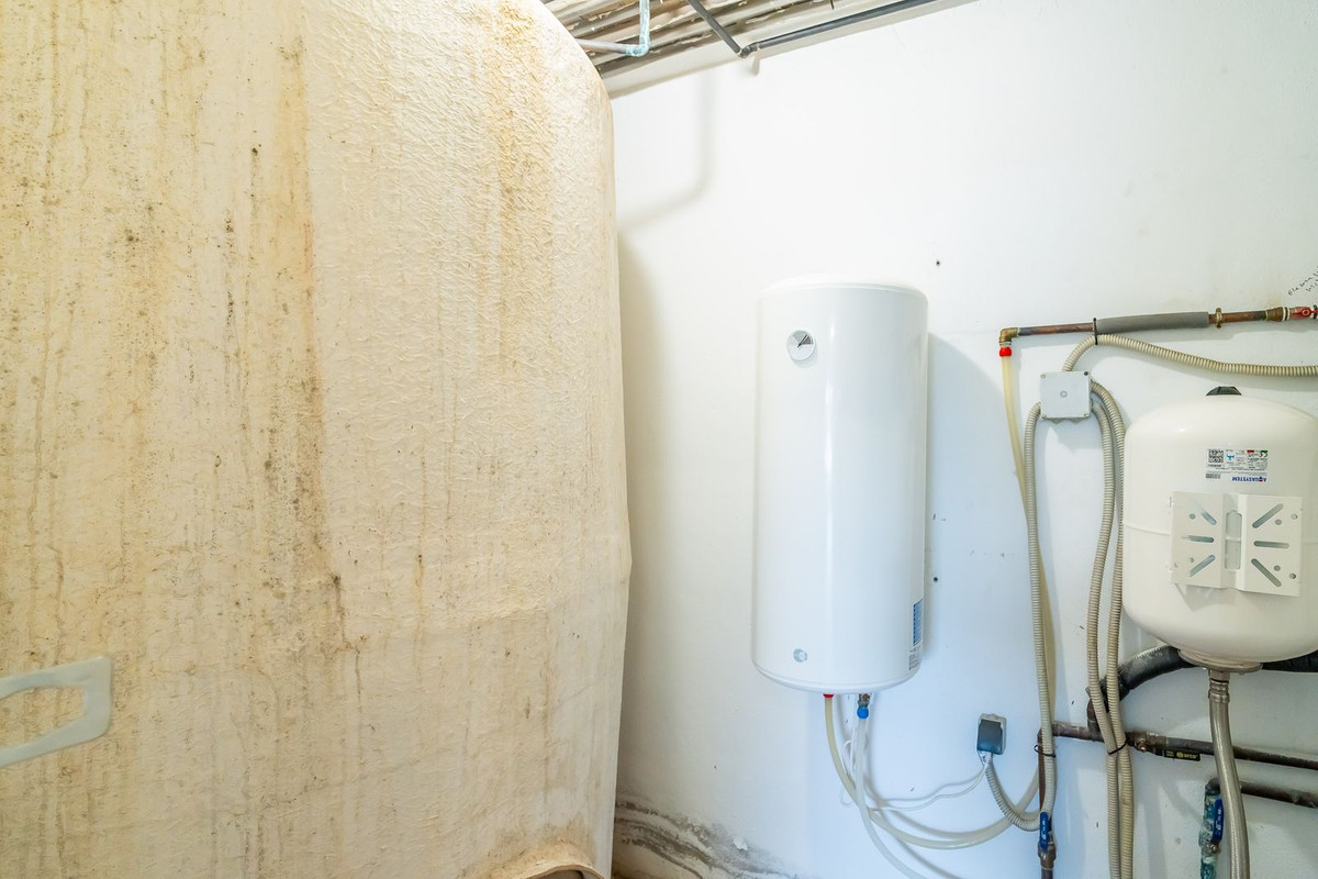 Upstairs: This floor features another double bedroom with a dressing room and ensuite bathroom, as well as the large master bedroom. The master bedroom is an oasis of comfort and tranquility with its spacious ensuite bathroom featuring a shower and hydromassage tub, a large dressing room, and a private nook ideal for reading or meditation. The bedroom has its own terrace with unobstructed views of the Mijas mountains.