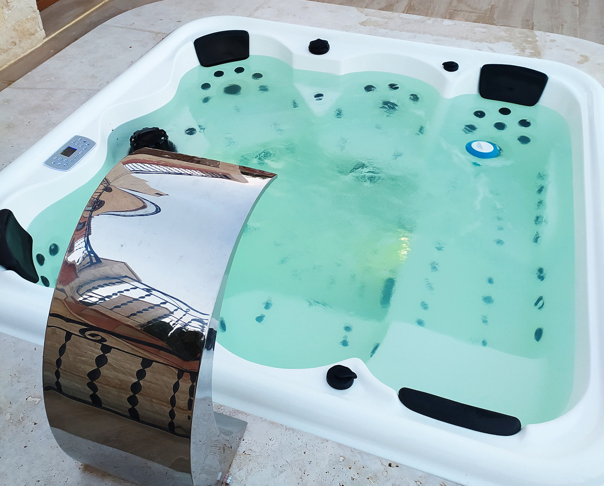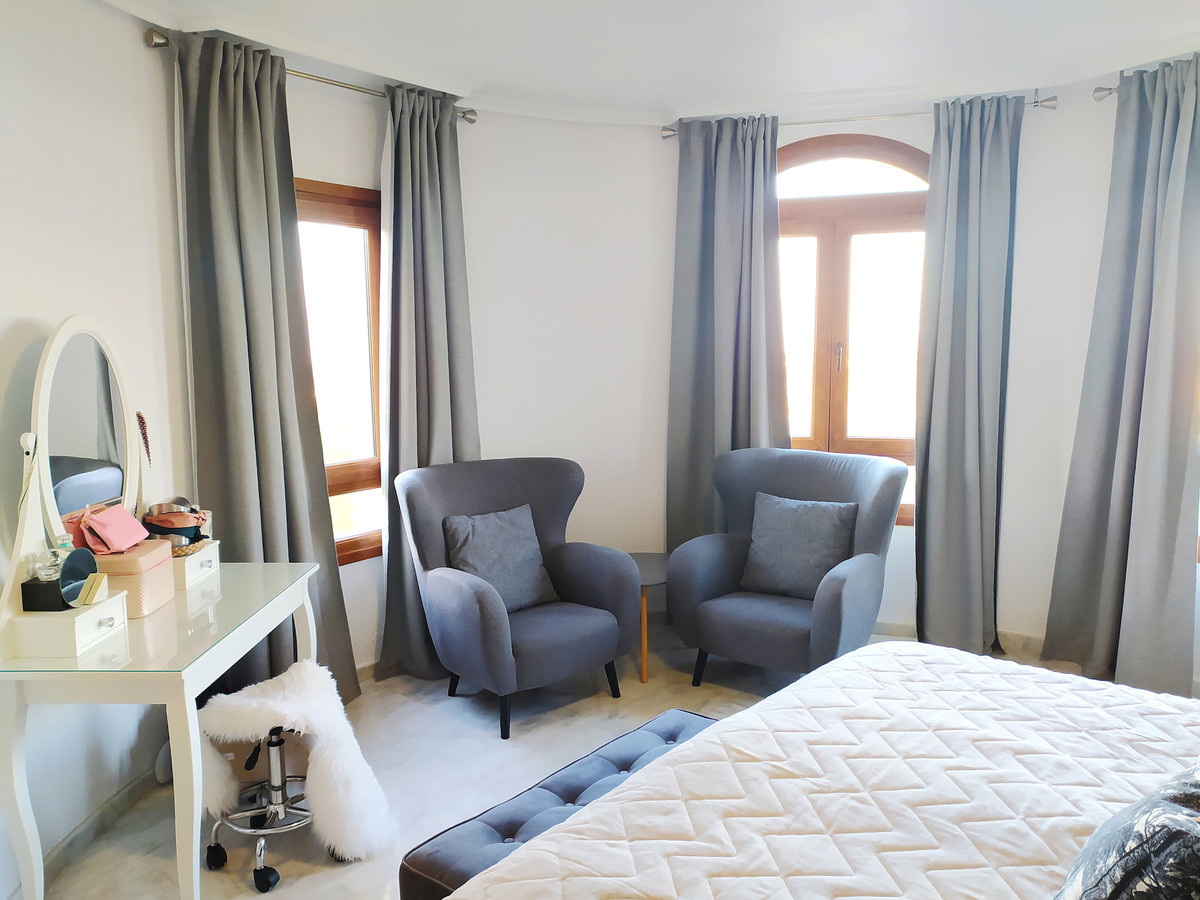 The property spans 157 m² across two floors and features a spacious rooftop terrace as well as an underground spa area. The spacious lot offers plenty of room for both relaxation and social gatherings. As a corner lot, you also enjoy an attractive location just a few steps from the communal pool.