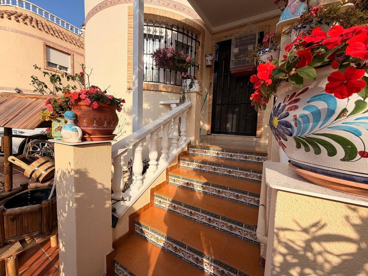 An attractive semi-detached chalet for sale located in the Sirena urbanisation, in the popular area of La Florida, known for its peaceful atmosphere and excellent location close to all amenities.The property sits on a 130 m² plot and offers greater privacy as it only shares a wall with the neighbouring house at the rear. It also features private parking within the plot, an underground storage room, and pleasant outdoor areas to enjoy the Mediterranean climate.The house is distributed over two floors. On the main floor there is a bright living room with a fireplace, an open-plan kitchen with access to the terrace, two bedrooms and a full bathroom. On the upper floor, accessed via an external staircase, there is a large terrace, an additional bedroom, a bathroom and a solarium with lovely views.