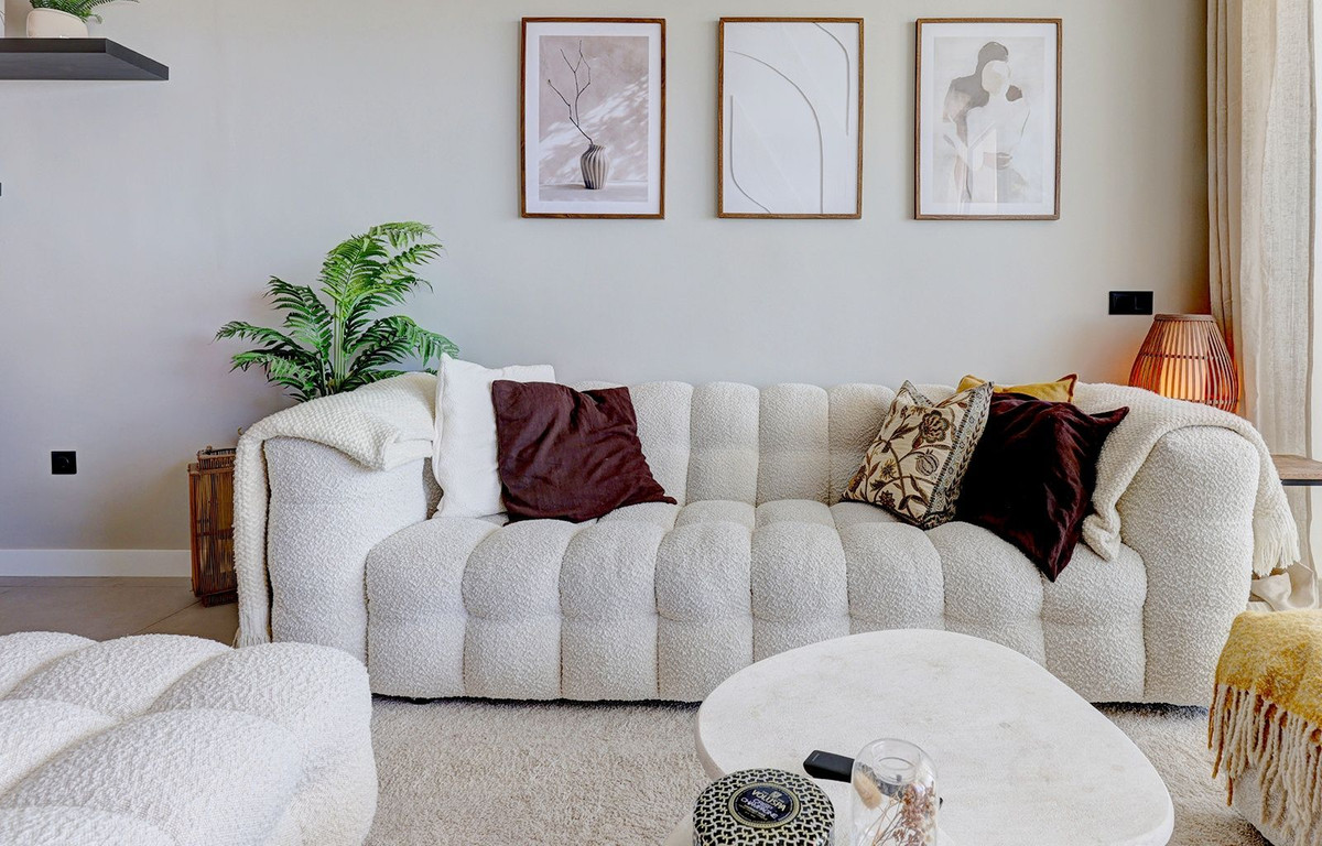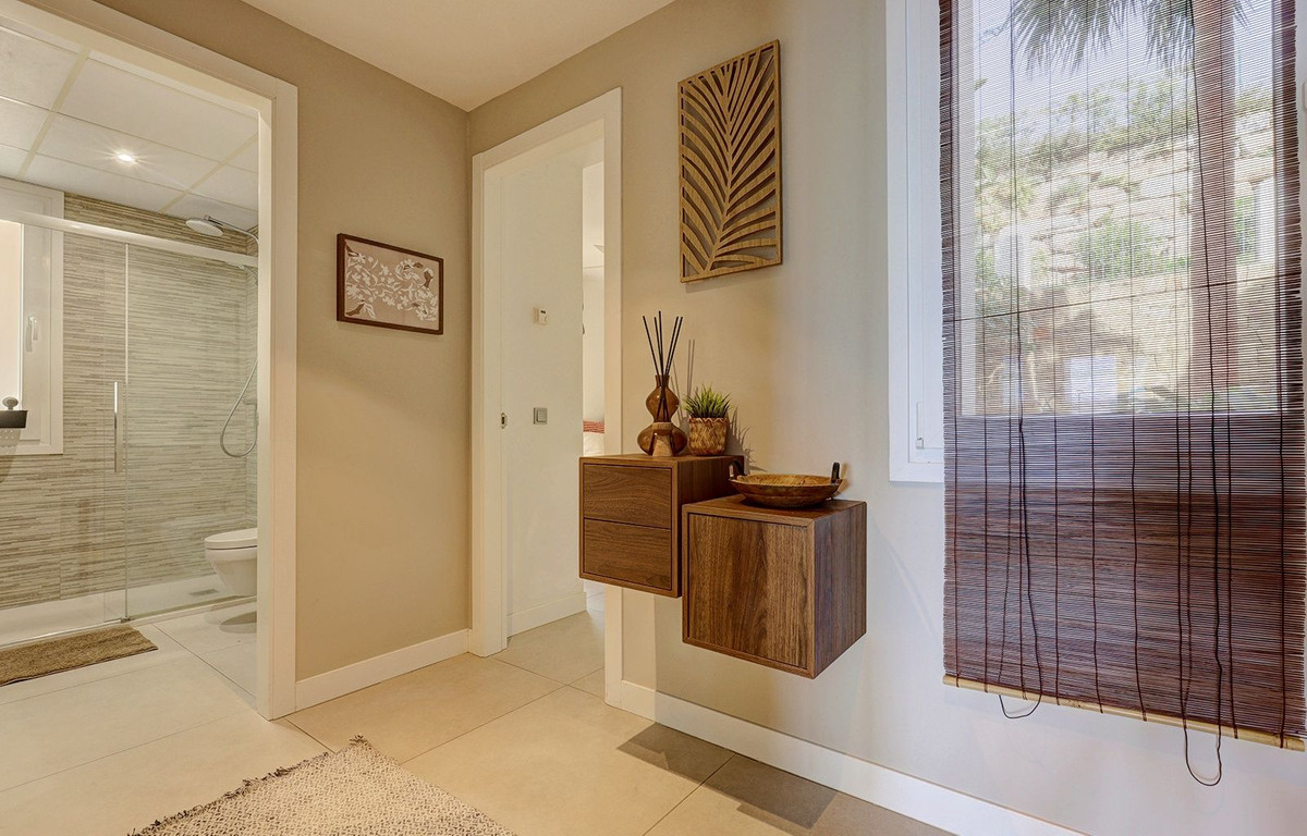 This beautifully presented modern apartment with a private garden offers a stylish open-plan living and dining area, complemented by a fully equipped kitchen featuring high-end SIEMENS appliances. The living space seamlessly extends to a private terrace, creating the perfect setting for indoor-outdoor living, while the private garden provides additional outdoor space to fully enjoy the Mediterranean lifestyle.