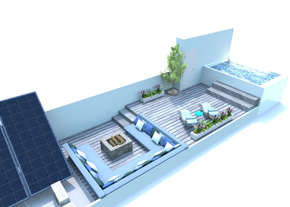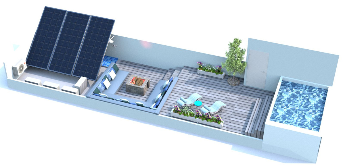 The property boasts two rooftop terraces reserved for the top-floor apartment. One is already designed for sunbathing, while the other is a blank canvas. Imagine adding a pool with a relaxation area and a