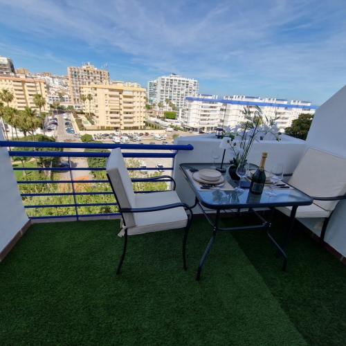 Welcome to this attractive penthouse in Benalmádena Costa, ideally located just 500 meters from the beach and approximately 2 km from Puerto Marina. The property is situated directly opposite the famous Parque de la Paloma and within walking distance to restaurants, cafés, shops, and all amenities, while still offering a peaceful living environment year-round.