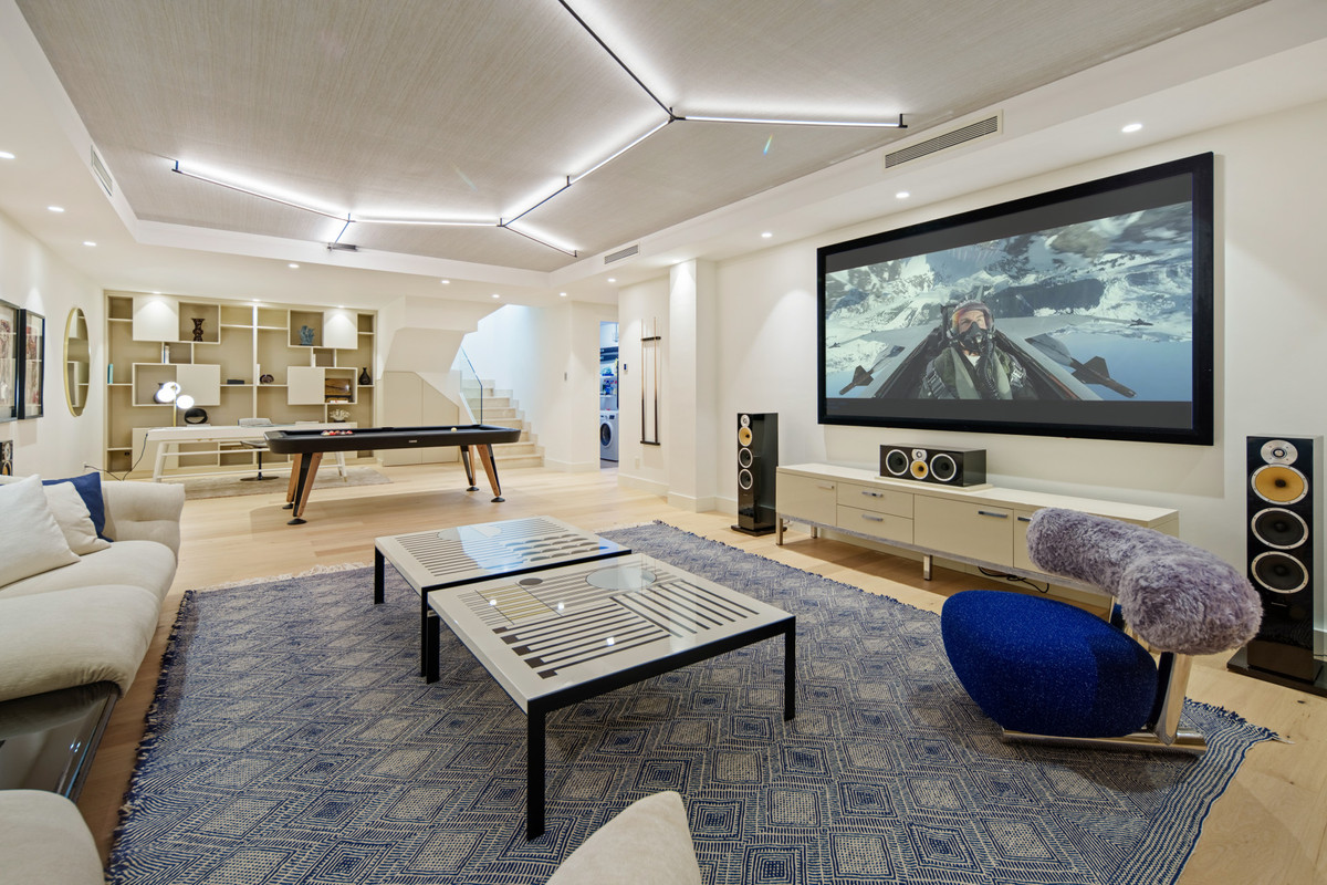 The interior palette is deliberate and unusually confident: deep burgundy, navy, soft blues, and warm natural tones layered through designer furnishings and curated artworks selected as part of Pedro Peña's scheme. Nothing feels transient. Storage is properly considered, circulation is logical, and the proportions favour daily living over spectacle. Even the transition from garage to home is seamless: arrive, close the door, and the outside world recedes without ceremony. It raises a quiet question: should a luxury home impress visitors, or simply make its owners not want to leave?