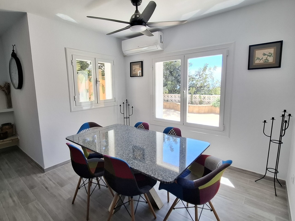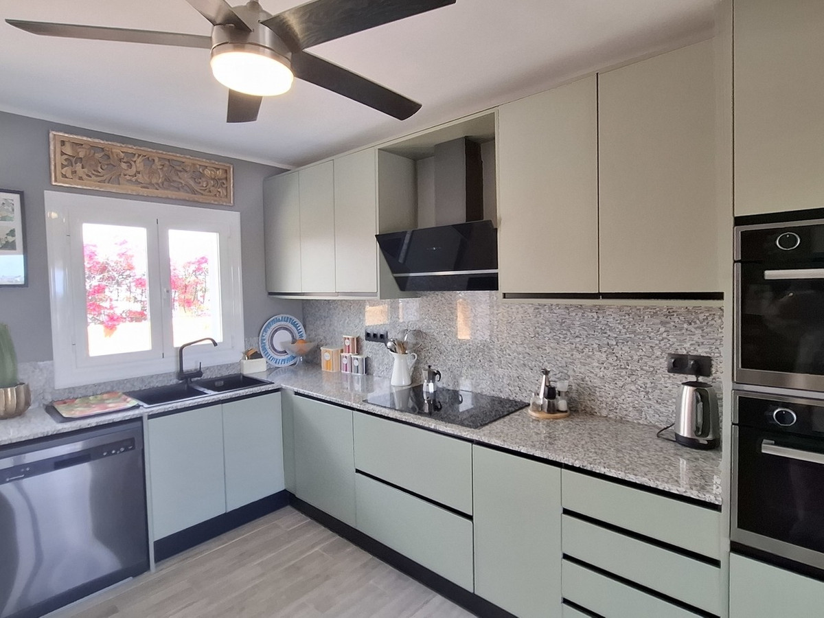 The villa is equipped with dual-purpose air conditioning throughout, ample storage, newly fitted windows and shutters, and recently upgraded kitchen, bathrooms, and pool pump. Additionally, 12 solar panels provide energy efficiency alongside the mains electricity supply.