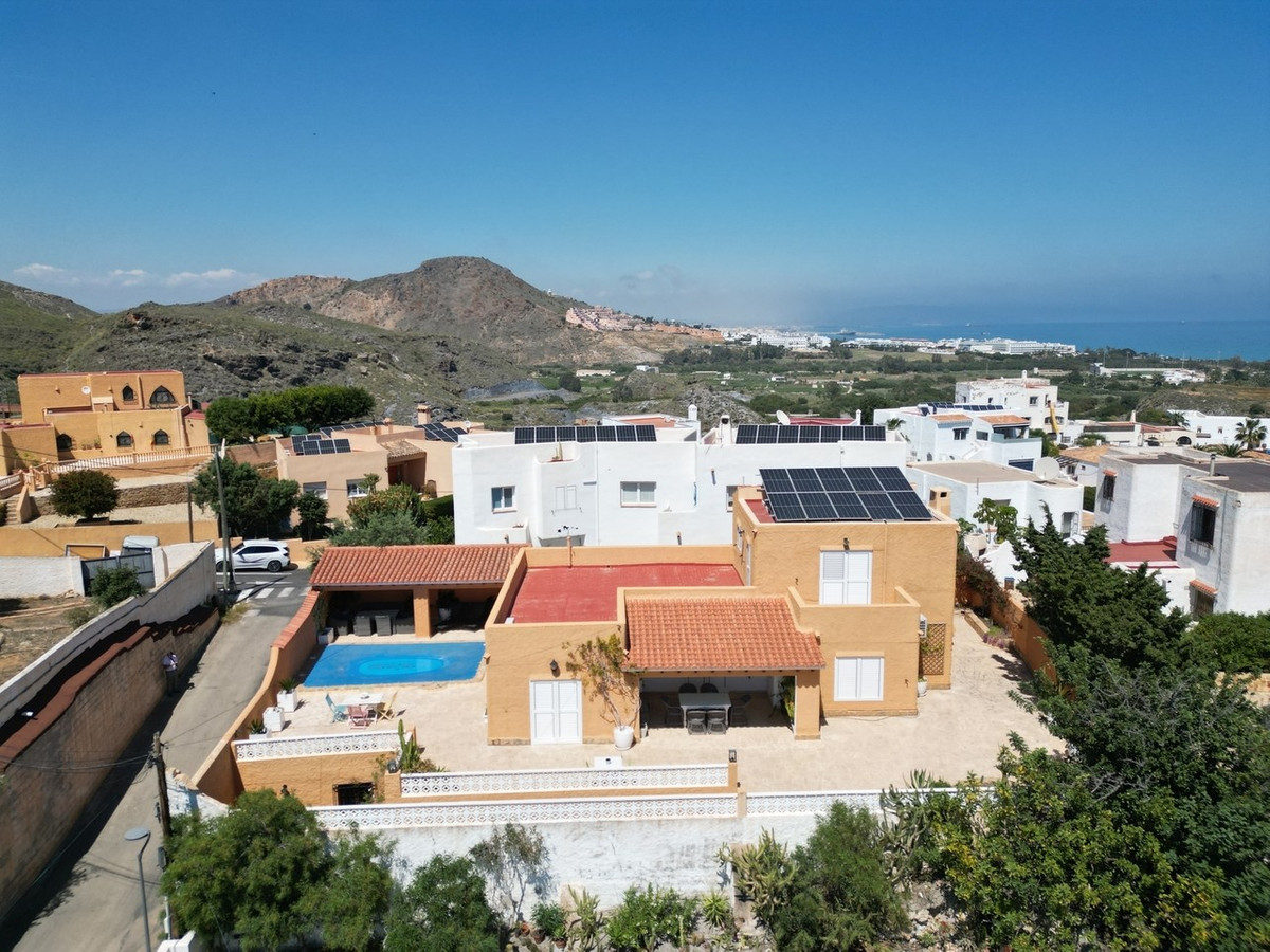 This is a fantastic opportunity to acquire a spacious south-facing villa, offering three bedrooms, two bathrooms, a private swimming pool, a large garage, and generous outdoor living areas. The property is further enhanced by a stunning roof solarium, providing sweeping views across the Mojácar coastline and surrounding mountains.