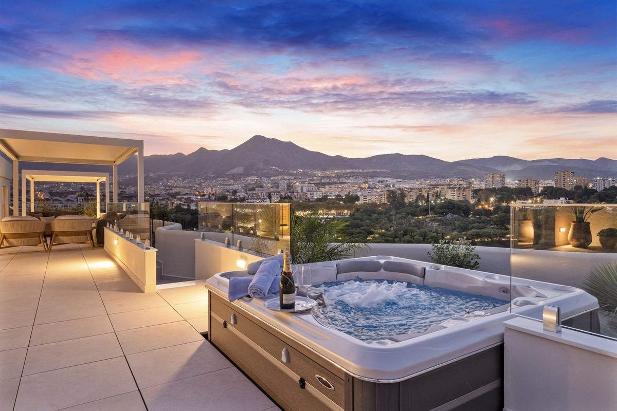 Discover refined coastal living in this spectacular penthouse in Benalmádena, where breathtaking views meet a peaceful and relaxing atmosphere. Designed for comfort and elegance, this high-end residence boasts an impressive outdoor space of over 150 square meters — ideal for both unwinding and entertaining.